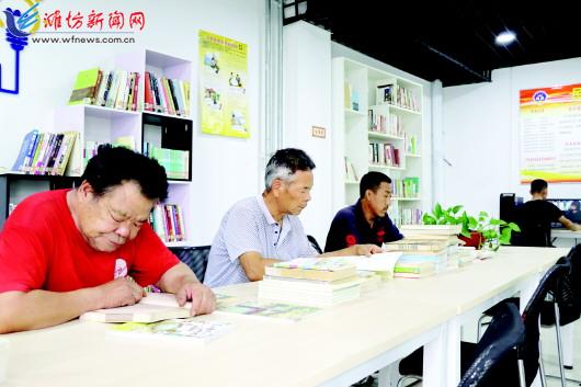 | 在寿光市图书馆洛城街道韩家牟城村分馆内,群众在优雅的环境中潜心读书。通讯员李瑞兰摄 |