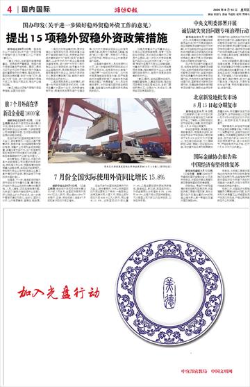 提出15项稳外贸稳外资政策措施