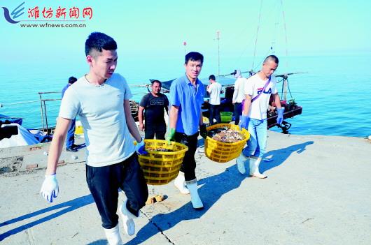 9月1日,为期四个月的黄渤海休渔期正式结束,沉寂了四个月的码头再次热闹起来,一艘艘出海捕捞的渔船鱼虾满仓、满载而归,渔民们的脸上洋溢着喜悦,将一筐筐新鲜的梭子蟹、虾虎、光鱼等海产品搬运上岸,经过分拣、称重,然后装车外运。图为滨海区渔民正在将刚捕捞的梭子蟹搬运上岸。 通讯员胡骁摄