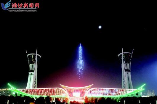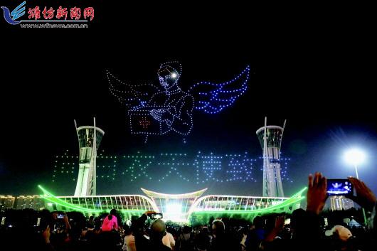 9月26日晚,800架无人机在市人民广场进行表演。 潍报全媒体记者 王乐 摄 □潍报全媒体记者 何赛 9月26日晚,一支由800架无人机组成的无人机编队从市人民广场腾空而起,打造了一场现代化科技感十足的视觉盛宴,为第37届潍坊国际风筝会助力喝彩。 静谧的夜空中,一架架无人机腾空而起,先是组成了国际风筝会的会徽,出现在人民广场的上空。37年来,潍坊国际风筝会不仅是每个潍坊市民心中难以替代的情愫,更是连接五湖四海友谊的桥梁。紧接着,无人机在升腾、闪耀、变换出一只硕大的龙头蜈蚣,引得在场观众阵阵惊呼。龙头蜈蚣风筝是潍坊风筝最具代表性的一种,它的扎制技艺复杂、放飞难度大,是潍坊风筝的翘楚。无人机摆出的龙头蜈蚣造型既写实又写意,通过上下升腾达到龙尾摆动的效果,活灵活现非常生动。 “我从小就爱看龙头蜈蚣风筝,今天看见无人机组成的龙头蜈蚣风筝的样子也十分惊叹,毕竟这么多无人机在一起配合必须天衣无缝才能组成这么复杂生动的造型,真是让人感叹现代科技的力量。”市民李先生说。 无人机展现出龙的造型,是中华民族的图腾,它是多种猛兽的集合,也象征着中华民族的相融共生、团结友爱。在今年发生的新冠肺炎疫情中,全国人民团结一心、互助友爱,在党中央的带领下我国以最快的速度取得抗击疫情的阶段性胜利。在抗疫斗争中,舍生忘死的医护人员用生命构筑起了广大人民群众生命健康的屏障。无人机组成的白衣天使,头戴口罩、手持医药箱的造型感动了现场的很多观众,引起现场观众的阵阵欢呼。大家纷纷表示,白衣天使是和平年代最可爱的人,特别是在今年的抗击新冠疫情斗争中,更应该向广大白衣执甲、逆行出征的医务工作者致敬。 “白衣天使们始终把人民群众生命安全和身体健康放在首位,全力以赴救治患者,彰显了敬佑生命、救死扶伤、甘于奉献、大爱无疆的崇高精神。看了这个表演真是惊喜中带着感动。”市民康先生说。 渤海之滨风筝都,农圣故里动力城。近年来,我市不断在努力实现更高质量发展上持续发力。不负韶华,只争朝夕,用实际行动在脱贫攻坚、新旧动能转换、“双招双引”、乡村振兴等领域努力实现新跨越,谋求新发展。 “潍坊的城市环境越来越美了,潍坊发展的后劲儿也十分强劲。作为一个潍坊人,通过今天这场无人机表演,也重新梳理了潍坊这几年发展的坚实印记,看得我热血澎湃。我们年轻人应该奋发图强,成为经济社会发展的中坚力量,为潍坊更好的明天添砖加瓦。”潍坊籍大学生李锐明说。