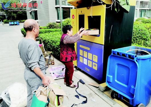 10月13日,奎文区广文街道西上虞社区居民正在把生活垃圾通过回收设备进行分类回收。今年以来,我市加快推动生活垃圾分类,改善人居环境质量,全力助推现代化高品质城市建设。潍报全媒体记者 姜斌 摄