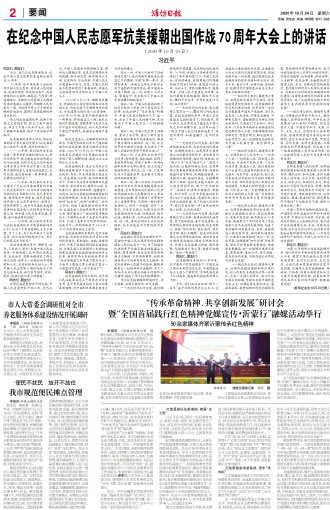 习近平《在纪念中国人民志愿军抗美援朝出国作战70周年大会上的讲话》全文详见2版