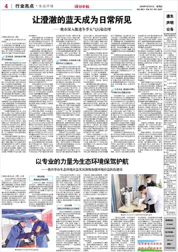 □潍报全媒体记者 付生 打赢“蓝天保卫战”贵在行动、成在坚持。 入冬以来,为有效应对重污染天气,持续改善空气环境质量,全市生态环境系统在市委、市政府坚强领导下,不断强化措施、综合施策,多方位推进,深入开展大气污染综合治理,坚决打好打赢大气污染防治攻坚战。 主动出击,及时启动污染天气应急响应 根据中国环境监测总站与京津冀及周边地区省级环境监测中心会商结果,预计12月5日至12月12日期间,我省内陆地区将出现两次大范围中重度污染天气过程。按照区域预警响应要求,经市重污染天气预警预报组联合会商,我市自12月4日晚发布重污染天气橙色预警,12月5日启动Ⅱ级应急响应。 根据《潍坊市重污染天气应急预案》,全市各级各部门按时启动应急响应,扎实落实污染减排措施。工业企业按照最新修订的应急减排清单采取限产停产等减排措施;建筑工地等扬尘源停止产生扬尘环节的建筑施工作业及渣土运输;加强重型柴油货车管控措施,最大限度减少上路运输行驶;本市行政区域内全面禁止燃放烟花爆竹。 在工业源污染减排方面,按照今年最新修订的应急减排清单采取限产停产等减排措施,对未按照清单要求落实减排措施的企业,以及应当纳入减排清单而未纳入的涉气企业,重污染天气应急期间实施停产。 在面源污染减排方面,进一步加强矿山、施工工地、交通扬尘和堆场扬尘等面源的应急管控,除涉及重大民生工程、安全生产及应急抢险任务外,停止可能产生扬尘的港口作业、矿山开采、砂石料场、石材加工、商品混凝土生产、物料堆场(筒仓、在封闭式场所内作业的除外)作业、建筑和拆迁施工及长距离工程等涉及土石方作业环节,施工工地停止建筑拆除、喷涂粉刷、护坡喷浆、混凝土搅拌等。主干道和易产生扬尘路段增加机扫和洒水频次。 在移动源污染减排方面,潍坊主城区、各县市区城区(外环路以内,不包括外环路)禁行建筑垃圾和渣土运输车、混凝土罐车、砂石运输车等中型和重型载货汽车(含燃气,新能源及国六标准以上除外),禁止使用各类工程机械(含挖掘机、装载机、平地机、铺路机、压路机、叉车等),承担民生保障、特殊需求产品及急救、抢险的车辆除外。 其他污染源方面,全市范围内禁止燃放烟花爆竹,停止所有喷涂、粉刷、切割、焊接等室外作业环节。要求生产过程中排放大气污染物的企事业单位、各类工地等加强管理,主动减排。 生态环境部门还呼吁儿童、老年人和患病等易感人群尽量留在室内,一般人群避免户外活动,确需外出要采取防护措施;中小学及幼儿园停止所有室外课程及活动。倡导公众及大气污染物排放单位自觉采取措施,减少污染物排放。倡导公众绿色出行,尽量乘坐公共交通工具或电动汽车等方式出行;驻车及时熄火,减少车辆原地怠速运行时间;加大公共交通运力,提高公共交通出行率。倡导公众绿色消费,单位和公众减少含挥发性有机物的涂料、油漆、溶剂等原材料及产品的使用。 自启动重污染天气Ⅱ级应急响应后,全市生态环境系统严格落实重污染天气应急响应措施,全面出击,积极有效应对重污染天气。 加密会商研判,由市生态环境监测中心、市气象局及“一市一策”专家团队组成的预警预报组,在应急响应期间加密会商频次,做好数据收集、研判工作,及时报送预报、会商等有关信息,提高预警预报准确度。 加强执法检查,市生态环境局抽调执法人员组成四个执法组,分区域对各县市区生产企业和施工工地减排措施落实情况进行督查,并对中心城区商混、铸造企业和施工工地等进行重点检查。 开展驻点帮扶,针对工业企业,生产工序不同,减排技术不同等特点,开展派员驻点帮扶,对96家重点排污企业派员驻厂,监督企业的减排措施落实、污染治理设施运行和污染物达标排放等情况。 提升科技手段,依托智慧用电监控系统,开展“智慧用电”筛查。目前,全市已有近2000家企业安装“智慧用电”系统并联网,通过该系统平台,可以对企业车间、生产线的用电情况实施精确监控,对未采取减排措施停限产的企业进行筛查。5号启动重污染天气应急以来,全市工业企业用电量较启动前下降37.5%左右,全社会废气排放量减少20%以上,有效提升了重污染天气应对成效。 各县市区分局也同步开展行动。奎文生态环境等相关部门和各街道,联合开展夜查行动。潍城对工业企业重污染天气“一企一策”和停产限产减排情况进行夜查。坊子各部门单位持续环保夜查,检查工地扬尘环节,联合执法,严控中重型车辆,积极应对重污染天气过程。寒亭召开重污染天气应急工作会议,街道、住建、城管、交警、环综办等多部门联动,共同采取措施,应对重污染天气。 青州、高密、昌邑、昌乐等持续对企业落实重污染天气应急情况进行检查,生态环境等部门和各镇街持续开展联动夜查,重点围绕企业重污染天气应急减排措施落实情况等,开展执法检查。同时,扎实开展驻厂帮扶,指导督促企业严格落实应急减排措施。 坚持常态,以持续有力措施应对大气污染防治 秋冬季是北方城市每年空气质量最差的季节,秋冬季出现的重污染天数能占到全年的95%以上,重污染天气期间的指标对全年空气指标影响非常大。 深入开展大气污染防治,持续改善提升大气环境质量,全市生态环境系统把功夫用在平时,不断创新举措,更新技术,强化措施,常