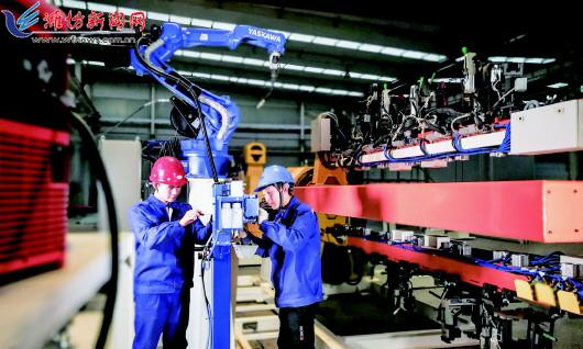 1月16日,诸城市一家机器人生产企业内,工作人员正在进行工业机器人生产。近年来,诸城市抢抓工业产业转型升级的战略机遇,加快新旧动能转换步伐,加速产业向高端化、智能化、绿色化、国际化转型,为实现城市高质量发展,提供强力支撑。 潍报全媒体记者 孙树宝 摄