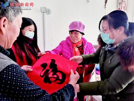 春节临近,近日,潍城区城关街道曹家巷社区联合辖区单位开展了“新春送万福·社区百户行”寒冬送温暖系列公益活动。志愿者把米面油、“福”字、春联等新春福袋送到弱势群体家中,并详细了解他们的身体健康、生活需求等情况,同时叮嘱外出要戴好口罩,注意做好个人防护,欢欢喜喜迎接新春的到来。图为志愿者把“福”字送到居民家中。 潍报全媒体记者 王晓光 摄