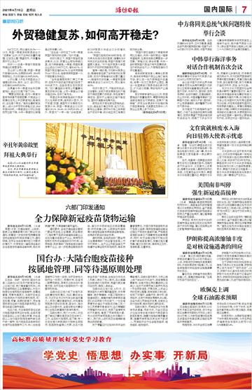 国台办:大陆台胞疫苗接种按属地管理、同等待遇原则处理