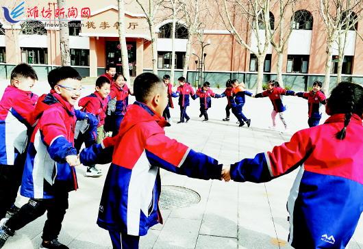 ▲近日,记者来到潍坊弘信学校看到,在偌大的操场上,弘信学校的小学生们正手拉手和老师一起做活动,脸上洋溢着快乐的笑容,欢快的笑声飘荡在学校的每一个角落。学校通过开展各类活动,真正寓教于乐培养学习兴趣,让学生们在活动中感受和成长,全力培养新时代的接班人。 潍报全媒体记者 何赛 摄