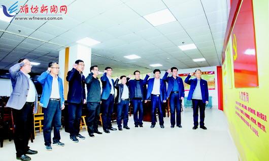▲为庆祝中国共产党建党100周年,重温党的奋斗历史,继承和发扬党的光荣传统,近日,寿光现代中学组织开展了以“学党史讲党史 励初心担使命”为主题的党史学习教育活动。图为学校党委会成员集体重温入党誓词。蔡宇青 摄