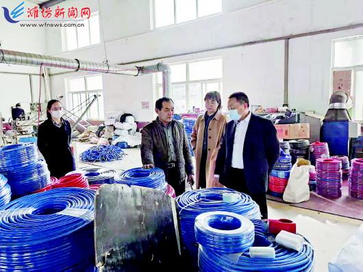 今年以来,昌乐县组织服务企业专员深入包靠企业了解生产经营、市场开拓、项目报批等方面情况,倾听企业声音,解决企业难题,助推提质增效。图为4月23日,服务企业专员深入企业了解企业发展情况。 潍报全媒体记者 王乐 摄