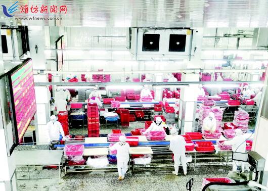 5月17日,诸城市华宝食品股份有限公司工人正在流水线上进行生鲜食品加工。近年来,我市加快推动现代农业发展,推动农副产品加工行业提档升级,打造现代畜牧业齐鲁样板,不断满足人民群众对高品质肉类及生鲜食品的消费需求。 潍报全媒体记者 姜斌 摄