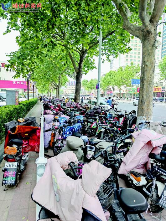 “不少电动自行车和共享单车无序停放在人行道上,不仅影响了市容,还给市民出行带来了不便。”连日来,不断有市民向本报反映,东风东街与新华路交叉口向南,路西侧约150米的人行道上停满了电动自行车,严重影响行人正常通行。 5月19日下午,记者来到市民反映的这段新华路进行了实地探访。记者在东风东街与新华路交叉口西南角看到,从该处的门头房前向南约150米的人行道,被电动自行车、共享单车等占用,该路段俨然成了一个非机动车停车场,行人自此通行十分困难。 “设置人行道就是为了方便市民通行,可如今都被电动车霸占,我们该从哪儿走?”自此处路过的市民F女士说,这里有沿街门头房、商场、写字楼,还有一处医院,过往市民本来就多,人行道被占用,不仅不方便,还存在安全隐患。 “每次去佳乐家超市都要经过这里,但整条人行道都停满了电动车,行人根本没法走。”市民L先生说,虽然前期有相关部门对这里进行了规范,设置了护栏并在人行道最里边预留了半米多宽的通道,但这并没有从根本上解决问题。“在附近上班的人员实在太多了,大量电动自行车没有合适的地方停放,有时就连预留的小通道上也停上了电动车。” 记者继续向南走发现,在世纪环球中心大门口附近有一处公共自行车站点。记者看到,公共自行车桩之间也被“见缝插针”的电动车堵得严严实实。此时,正在此处刷卡借车的市民M女士向记者求助,原来她将车子取出后发现周围都被电动车围着,甚至找不到缝隙将车子推到主路上。“这个站点人都没法走,更别说借车、还车了。”M女士对此很无奈。 采访中记者发现,像M女士这样还车、取车困难的市民还有很多。他们希望相关部门能重视此事,既对该路段现有区域停车进行规范,也要想方设法在附近增设新的停车区域,疏堵结合,真正把问题解决,方便市民出行。