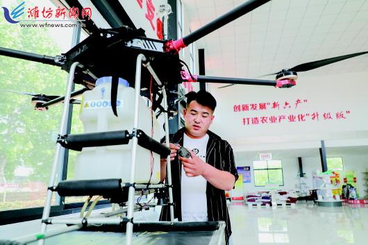 近年来,我市积极推进农业发展方式转变,通过发挥基层党组织的组织优势、合作社的服务优势等,创新发展“新六产”,打造农业产业化“升级版”,促进了集体经济增收和农民致富。图为6月6日诸城市佳博天益农业公司技术人员在调试植保无人机。 潍报全媒体记者 姜斌 摄
