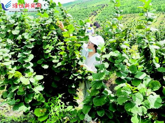 7月21日,游客在诸城市皇华镇华山万亩榛子种植示范基地体验榛子采摘活动。近年来,诸城市南部山区立足资源优势,大力发展榛子等特色果品种植产业,既打造了绿水青山,又促进了农民增收,榛子种植面积已发展到3万余亩。潍坊日报社全媒体记者 窦浩智 摄