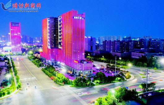 | ▲7月17日,高新区健康东街一处高楼被璀璨的灯光装扮成了红色。