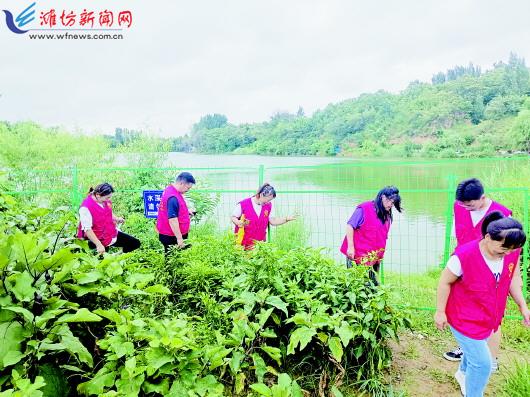 入夏以来,为做好防溺水、防汛等工作,青州各级各类志愿服务队伍积极行动,在各级党委、政府的统筹部署下,全方位组织开展防溺水、防汛宣传和巡查等志愿服务活动。图为高柳镇南马兰村由党员和村民自发组织的志愿服务队坚持到河边、池塘进行巡查。 潍坊日报社全媒体记者 付生 摄