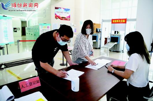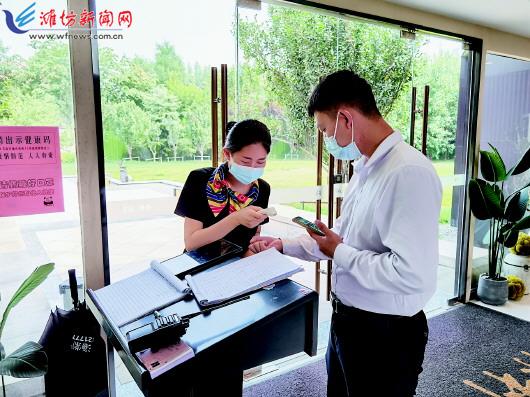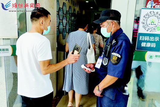 近日,按照市委、市政府疫情防控工作相关部署,我市各行各业迅速行动,通过强化细化防范措施,全面做好疫情防控工作。图①:8月10日,在寒亭区的保利·海棠项目售楼处,工作人员正在认真为顾客测温、查健康码。图②:8月11日,高新区人民医院保安在对进入的人员查验健康码和行程码。图③:8月10日,读者在潍坊市图书馆入口处进行疫情防控登记。 潍坊日报社全媒体记者 赵金凤 王晓光 潘来奎 摄