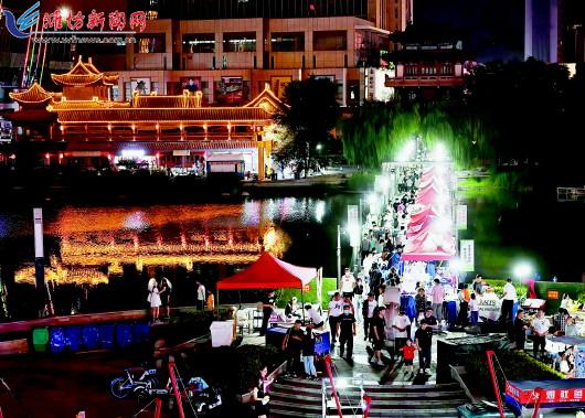 三更灯火不曾收,玉脍金齑满市楼。潍坊初秋,气候宜人。每当华灯初上,夜晚的城区白浪河两岸更是霓虹灿烂,建筑物披上华丽的彩衣,河水在灯光照射下五彩斑斓,美不胜收的景色让人们流连忘返。越夜越美丽的白浪河畔,带动了城区的夜间经济,围绕着白浪河两岸的商场、公园、广场里,人流涌动,烟火气十足,给我们的城市增添新活力。潍坊日报社全媒体记者 王晓光 摄