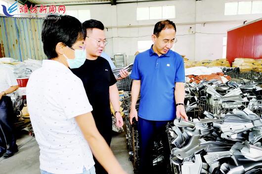 昌乐县朱刘街道切实加大服务企业(项目)工作力度,深入践行“我为群众办实事”,创新实施“1+1”服务模式,通过精准服务、靠前服务,以促进企业增收创效、安全发展为目标,助力企业高质量发展。图为9月26日上午,昌乐县朱刘街道服务企业专员到包靠企业查看安全隐患整改落实情况。 潍坊日报社全媒体记者 王乐 摄