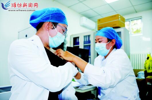 根据国家、省统一部署,我市启动新冠病毒疫苗加强免疫。10月14日,记者从有关部门获悉,目前新冠病毒疫苗加强免疫优先在感染高风险人群和保障社会基本运行的关键岗位人员等目标人群中开展。图为一名医护人员在接种第三针新冠疫苗。 潍坊日报社全媒体记者 王路欣 摄