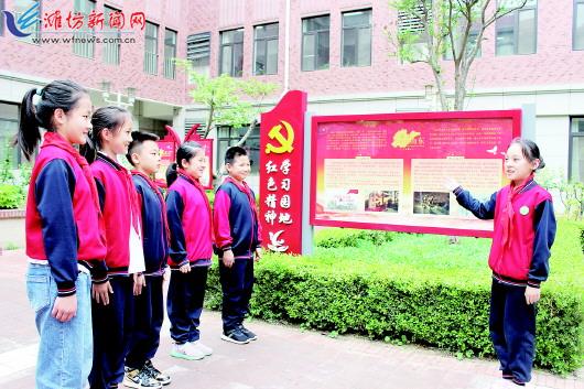<近日,潍城区西关中心小学组织开展了“请党放心 强国有我”主题教育活动。少先队员们了解了党的奋斗历程,深刻体会到幸福生活的来之不易。 通讯员 王路平 摄