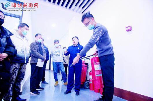 12月30日,潍坊日报社邀请了奎文区消防救援大队宣讲员段梦欣,向报社的干部职工宣传普及防火灭火知识及逃生常识。从易发火患的电源热源及时检查到易燃物合理存放,再到实际灭火的操作,编辑记者们听得认真仔细,牢记安全不放过每一个细节。图为记者亲手操作灭火器。 潍坊日报社全媒体记者 巩建国 摄
