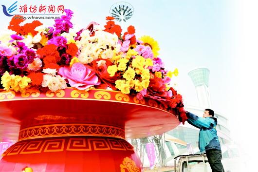 本报讯 (潍坊日报社全媒体记者 刘福文)新春佳节临近,市文化艺术中心园区内已经装扮一新,处处充盈着喜庆吉祥的气息。路边树木装饰满天星、渔网灯、树挂灯等各类彩灯,滨河步行街内运营商户悬挂串旗、张贴对联,在各场馆出入口还装饰有静电雕刻窗花。随着夜幕降临,道路、广场、树木、场馆等处灯光串成一体,流光溢彩、美不胜收。 辞旧迎新岁、冬奥倒计时。据了解,为营造欢乐祥和的新春氛围,为北京冬奥会加油助威,市文化艺术服务中心根据园区不同区域的功能划分,结合建筑风格特色,让流光溢彩的灯光与造型独特的场馆交相辉映,呈现出多层次、立体化的效果。在南广场,虎年主题的新春花篮传递着新年吉祥、虎虎生威的美好寓意。广场设置了1100个灯笼组成的新春氛围通道,可实现白天美观、夜晚亮化的作用。春节期间,这里会成为城区夜间休闲的好去处。图为工作人员在整理装饰造型。 潍坊日报社全媒体记者 姜斌 摄