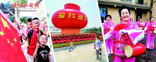 我与国旗合个影。(资料图片) 潍坊日报社全媒体记者 王玉芳 摄   人民广场的花坛。(资料图片) 潍坊日报社全媒体记者 张驰 摄  2月14日,奎文区北苑街道卧龙社区举办“欢天喜地贺新春 锣鼓喧天闹元宵”活动。     潍坊日报社全媒体记者 姜斌 摄