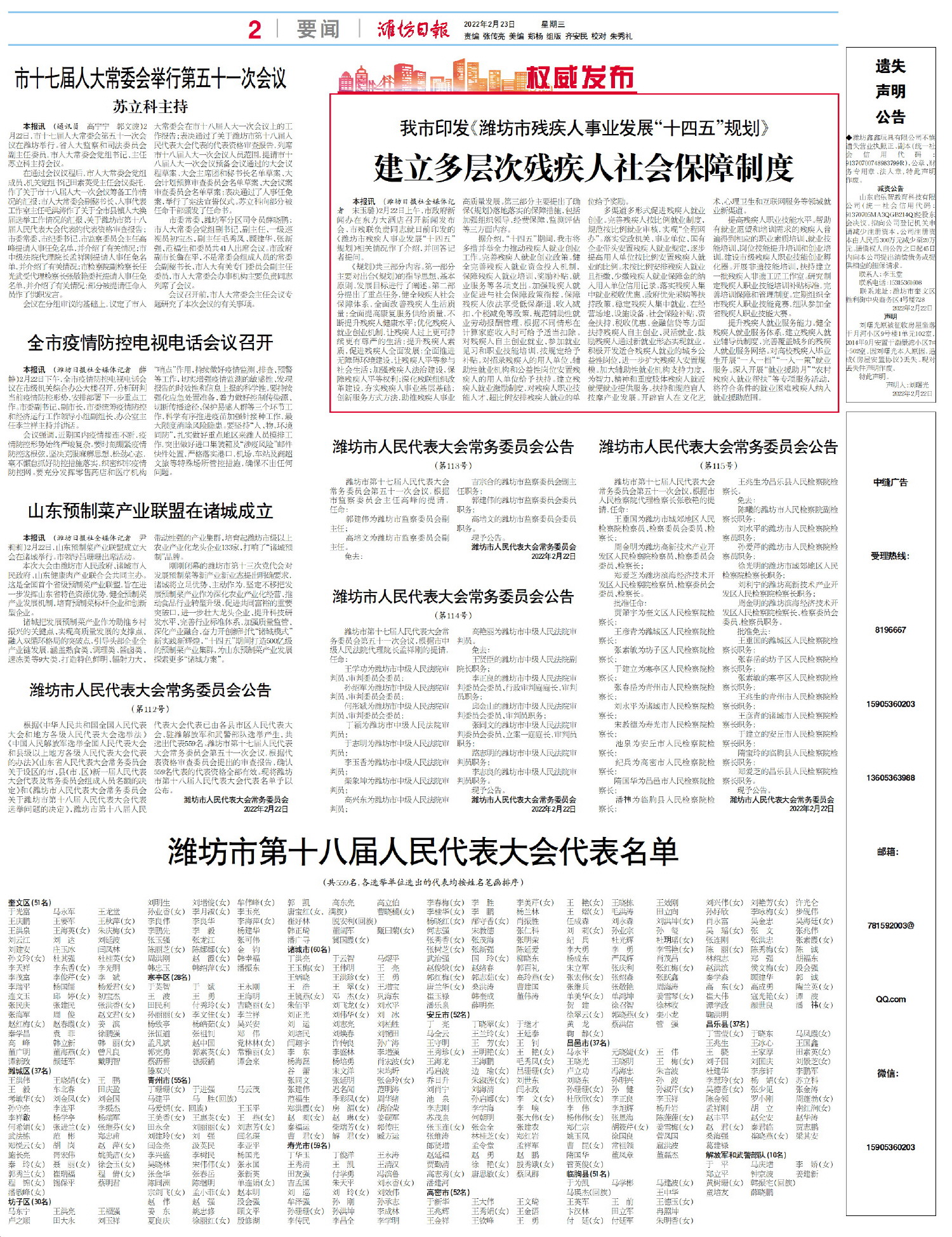 地址:潍坊市奎文区文化路500号 邮编:261031 电话:0536-8196033 公告热线:0536-8196667