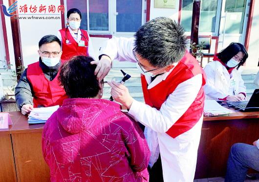 在“学雷锋日”到来之际,为了以实际行动弘扬雷锋精神,3月3日,一场“学雷锋义诊”活动在潍城区城关街道长胜社区举行,医务志愿者为居民检查听力、测量血压、检查眼疾、内科等,针对每位居民的检查情况,进行一对一的健康咨询,更好地为社区居民健康服务。潍坊日报社全媒体记者 张驰 摄