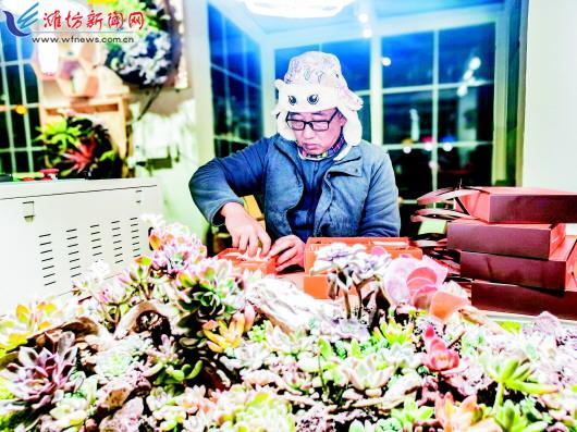 | 昌乐良好的社会风尚,吸引了众多外地客商来此兴业。图为黄文祥将具有地方特色的烘焙伴手礼装盒包装。 |
