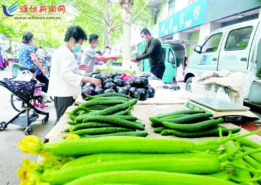 5月25日,农历四月二十五,城区赵疃大集,市民们带好口罩扫码进入市场,按需选购新鲜食材。进入夏季以来,本地的西红柿、茄子、辣椒、小油菜、樱桃、油桃、西瓜等时令蔬菜水果大量上市,加上南方的杨桃、芒果,我市各大市场蔬菜水果种类一应俱全,价格稳中有降。 潍坊日报社全媒体记者 王晓光 摄