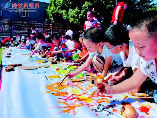 在“六一”国际儿童节来临之际,滨海区希望(金凤凰)幼儿园开展了以“童心筑梦 志在未来”为主题的庆“六一”系列活动。图为孩子们在百米画卷上认真创作。