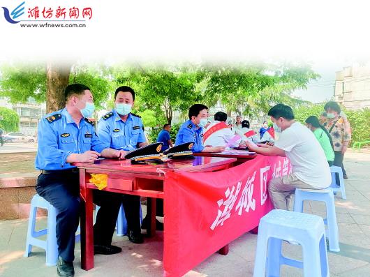 | 潍城区综合行政执法局开展“城管进社区”活动。 潍坊日报社全媒体记者 赵春晖 摄 |