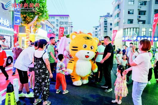 □潍坊日报社全媒体记者 王翠/文 许凯/图 烤面筋、奶茶、冰淇淋,百种美食汇集于此;机甲萌宠巡游,热情互动,吸粉无数;舞台前人头攒动,好歌热舞引人驻足……7月26日晚7时许,记者来到位于奎文区广文街道东上虞社区新华西路的“潍坊非遗特色美食街”看到,林立的网红摊位、沿街店车吸引了不少市民前来打卡,尽享美食盛宴。