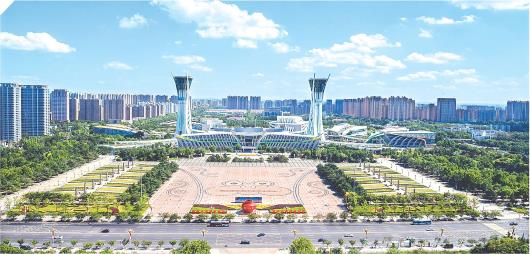 俯瞰潍坊市人民广场。 潍坊日报社全媒体记者 王晓光 摄
