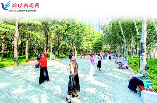 市民在城区一处公园跳舞。   潍坊日报社全媒体记者 张驰 摄