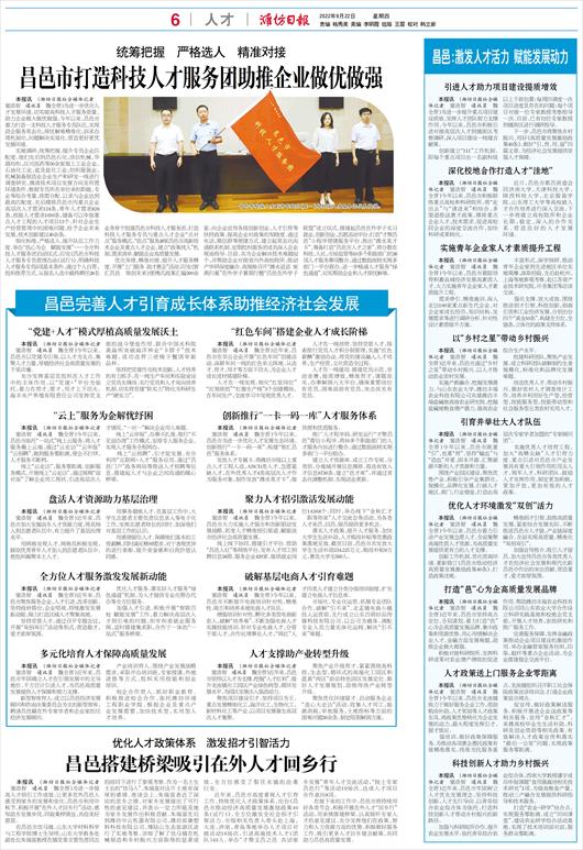 昌邑市打造科技人才服务团助推企业做优做强