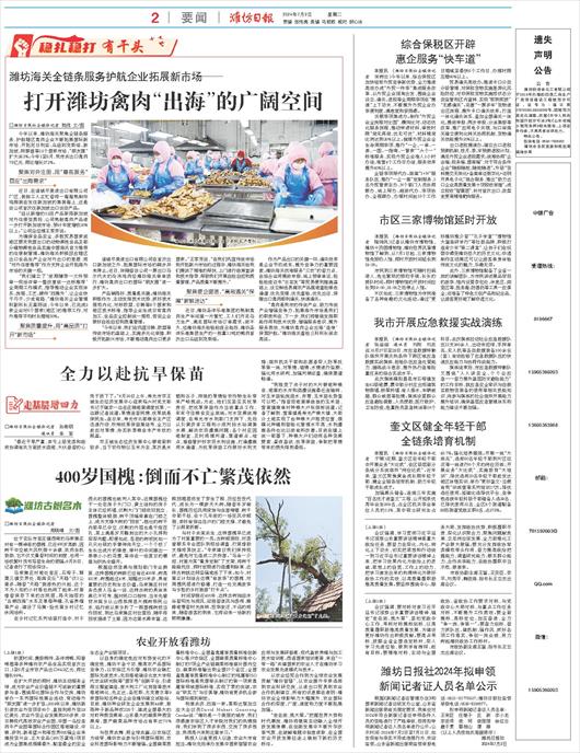潍坊日报社2024年拟申领