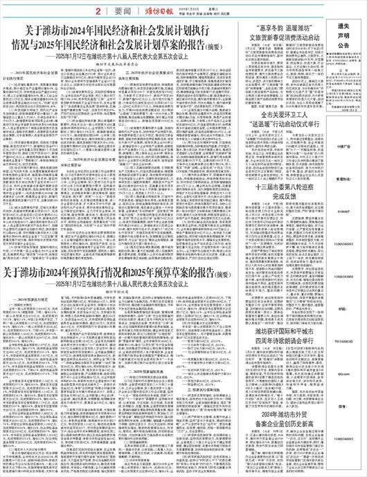 关于潍坊市2024年预算执行情况和2025年预算草案的报告(摘要)