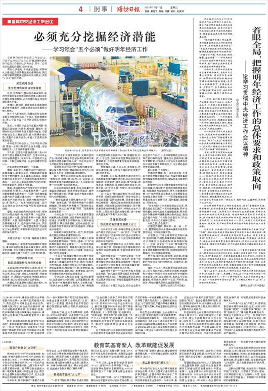着眼全局,把握明年经济工作的总体要求和政策取向