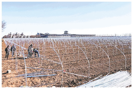 隆冬时节,景芝镇东南村的智远生态种植农场75个现代化西瓜拱棚加紧施工。农场采用瓜菜轮作模式,占地200亩,预计年产西瓜与有机蔬菜1500吨,亩均年收入超1.5万元。