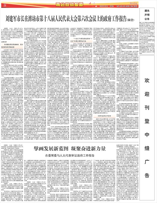刘建军市长在潍坊市第十八届人民代表大会第六次会议上的政府工作报告